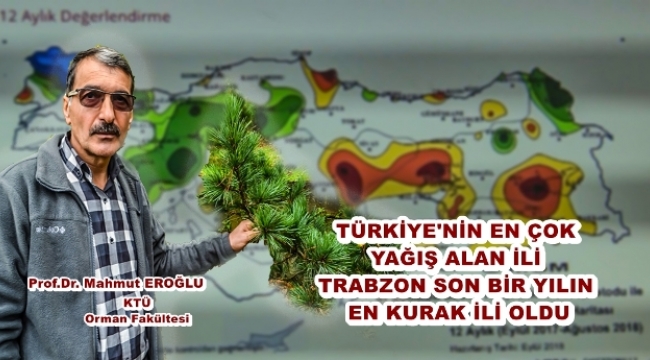 KTÜ Orman Fakültesi Orman Entomolojisi ve Koruma Ana Bilim Dalından Prof. Dr. Mahmut Eroğlu: - “Eylül 2017’den Ağustos 2018’e kadar Türkiye geneline baktığımız zaman 3-4 tane kurak nokta var; bunlardan birisinin de Trabzon olduğunu görüyoruz”